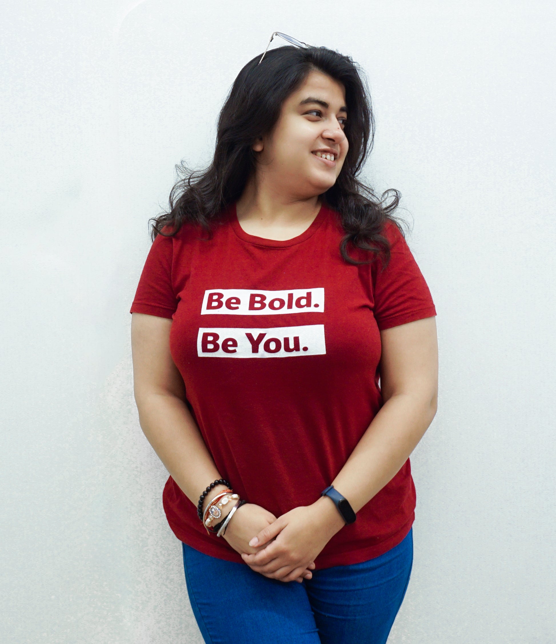 "Be Bold Be You" T-shirts: 80% cotton, 20% polyester, and machine washable. These minimalistic tees feature a straight cut and relaxed fit, designed for comfort and style. Available in banana cream and wine. Made with love, perfect for any occasion.