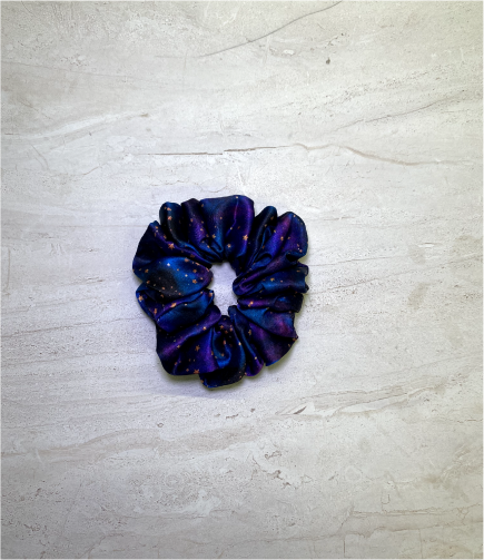 Beautiful shades of midnight and starry hues blended onto a luxurious satin.