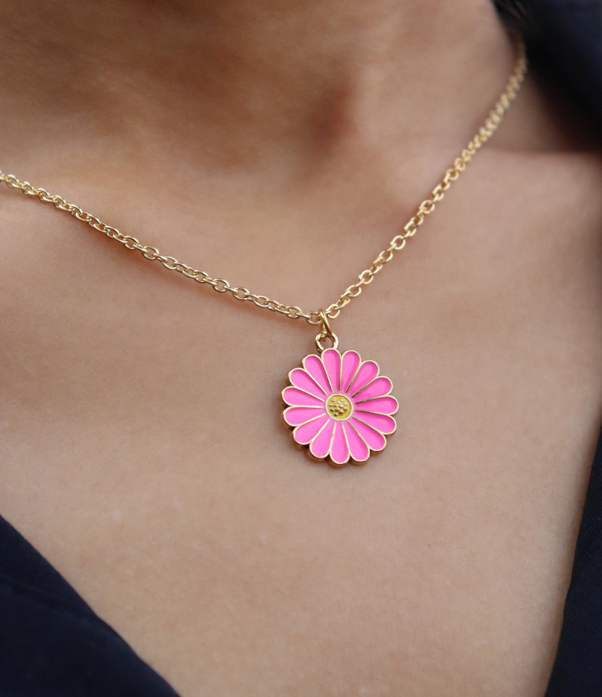 Take the saying 'All sunshine and daisies' to the next level with our cute Pink daisy pendant chain.